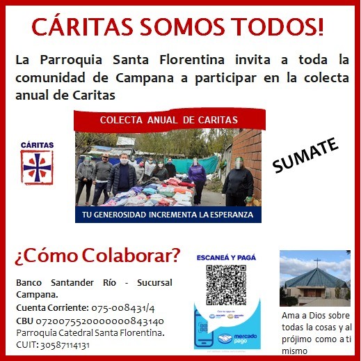 Este fin de semana se realiza la Colecta Anual de Cáritas