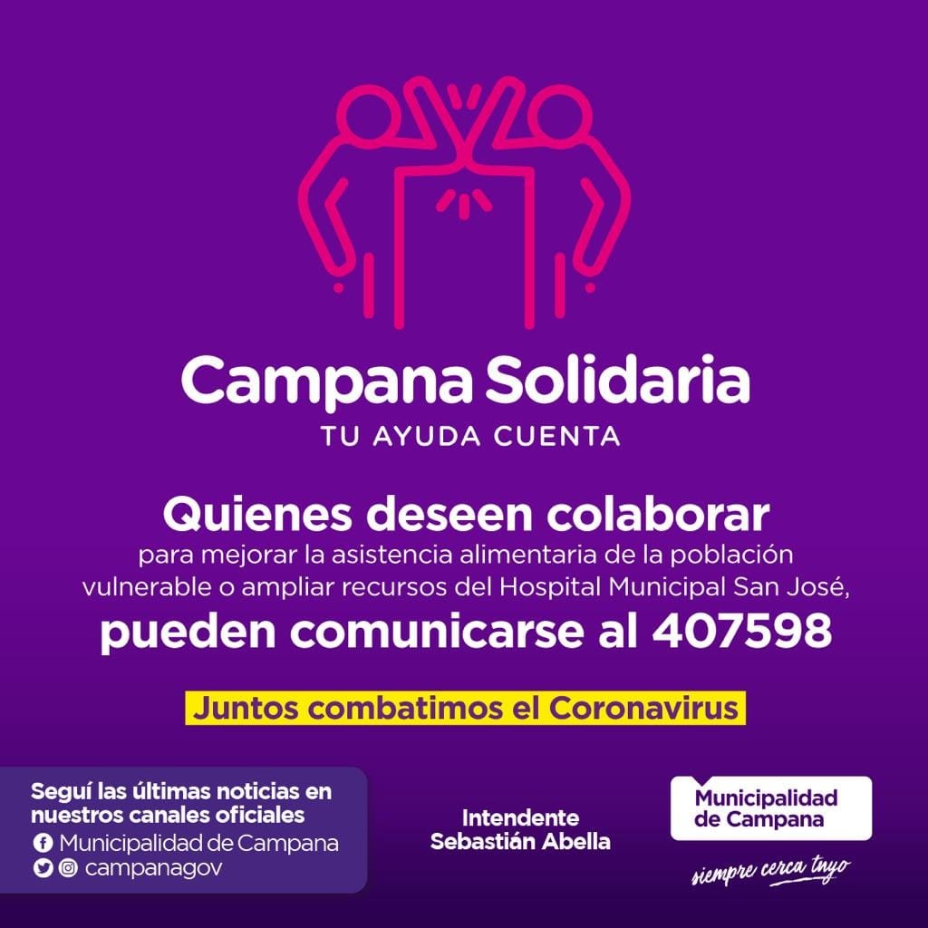 Dado la compleja situación de muchos sectores y a raíz de la extensión de esta cuarentena para prevenir la propagación del Coronavirus, desde el Municipio invitaron a sumarse una vez más a la campaña.