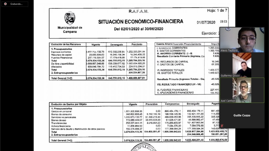 Desde la UV Más Campana, Axel Cantlon y los contadores Guillermo Cozzo y Alexis Twyford analizaron la información financiera del municipio del primer semestre del año 2020.