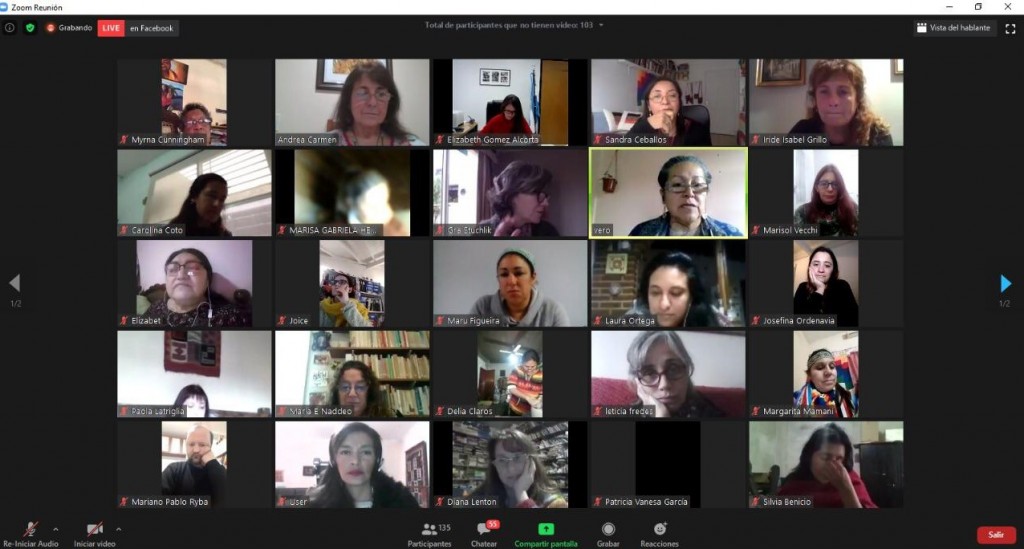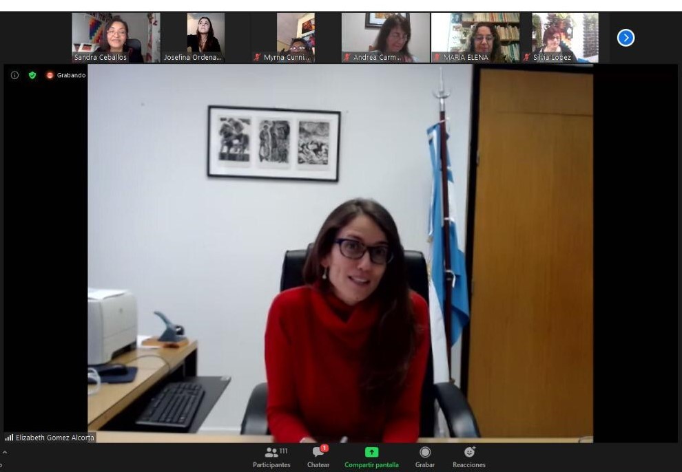 Elizabeth Gómez Alcorta, ministra de las Mujeres, Géneros y Diversidad de la Nación (MMGyD) participó del encuentro "Mujeres indígenas frente a la emergencia Sanitaria", convocado por la Cátedra de Derechos Humanos de los Pueblos Indígenas de la Facultad de Derecho de la UBA junto al Fondo para el Desarrollo de Pueblos Indígenas América Latina y el Caribe (FILAC) y el Foro Indígena de Abya Yala (FIAY). El conversatorio se realizó con el objetivo de visibilizar los derechos de las mujeres indígenas, reflexionar sobre el valor y el rol que desempeñan en la sociedad actual, la necesidad de un enfoque de género en los planes de acción y participación de las mujeres indígenas y trabajar sobre los desafíos del tiempo pos pandemia.