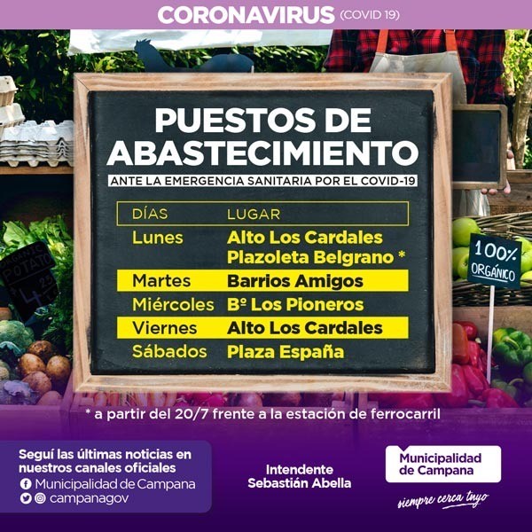 La Dirección de Producción del Municipio informa que los puestos de abastecimiento continúan recorriendo la ciudad.