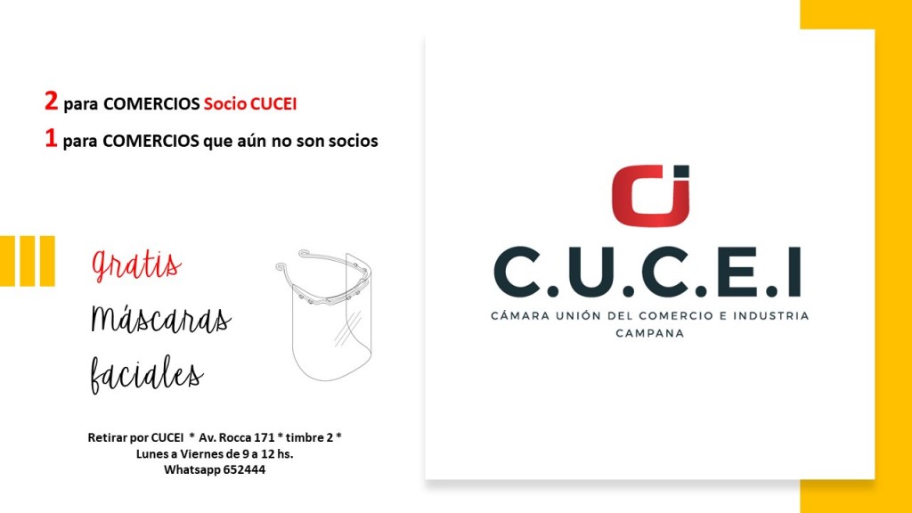 Los socios de la Cámara Unión del Comercio e Industria de Campana están retirando dos máscaras por comercio, sumado a la entrega que se hizo en Mayo de 1 litro de alcohol en gel y la bonificación desde Abril de no cobrar la cuota societaria, son paliativos al difícil momento que está atravesando el sector comercial durante esta larga pandemia.