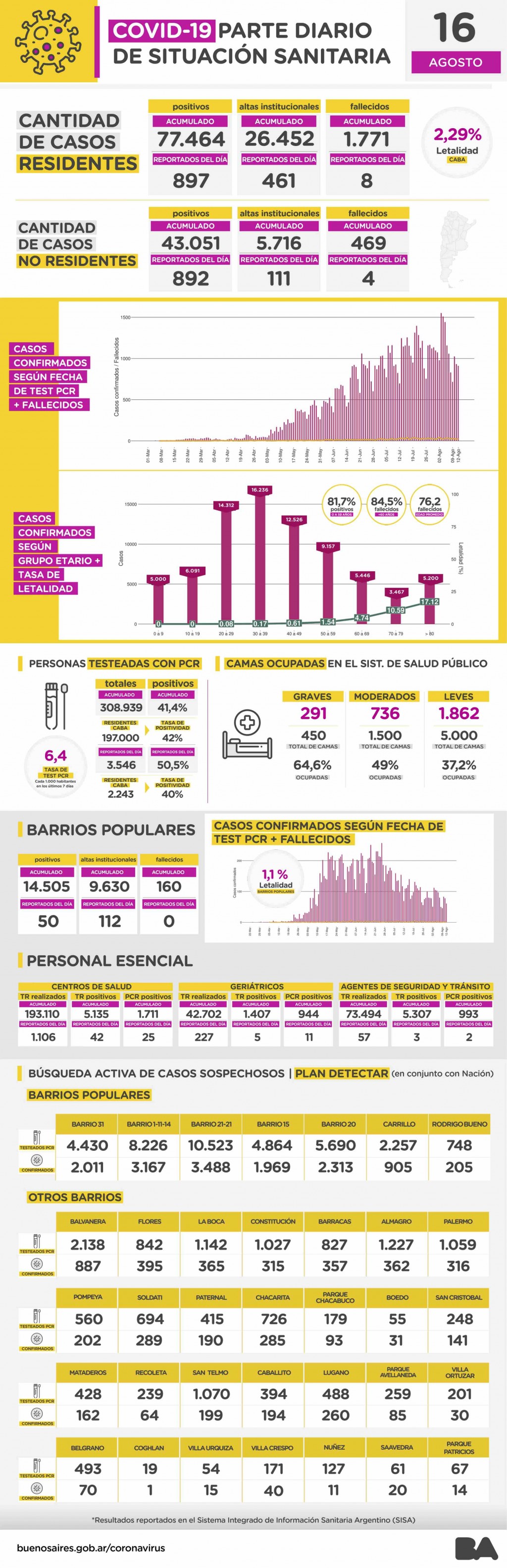 Ls datos corresponden al día domingo 16 de agosto de 2020.