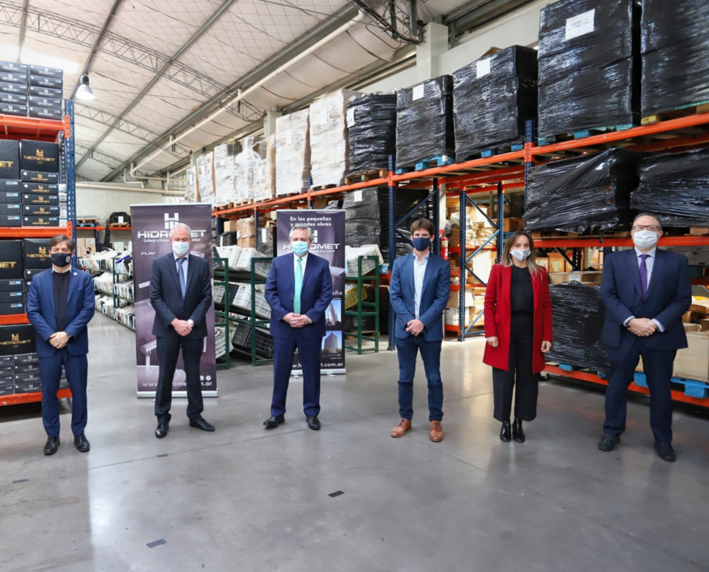 El gobernador de la Provincia de Buenos Aires, Axel Kicillof, participó este lunes del lanzamiento de Precios Cuidados para la Construcción, encabezado por el Presidente de la Nación, Alberto Fernández, durante una visita a la planta de producción de grifería de la empresa Hidromet, en el partido de San Fernando.