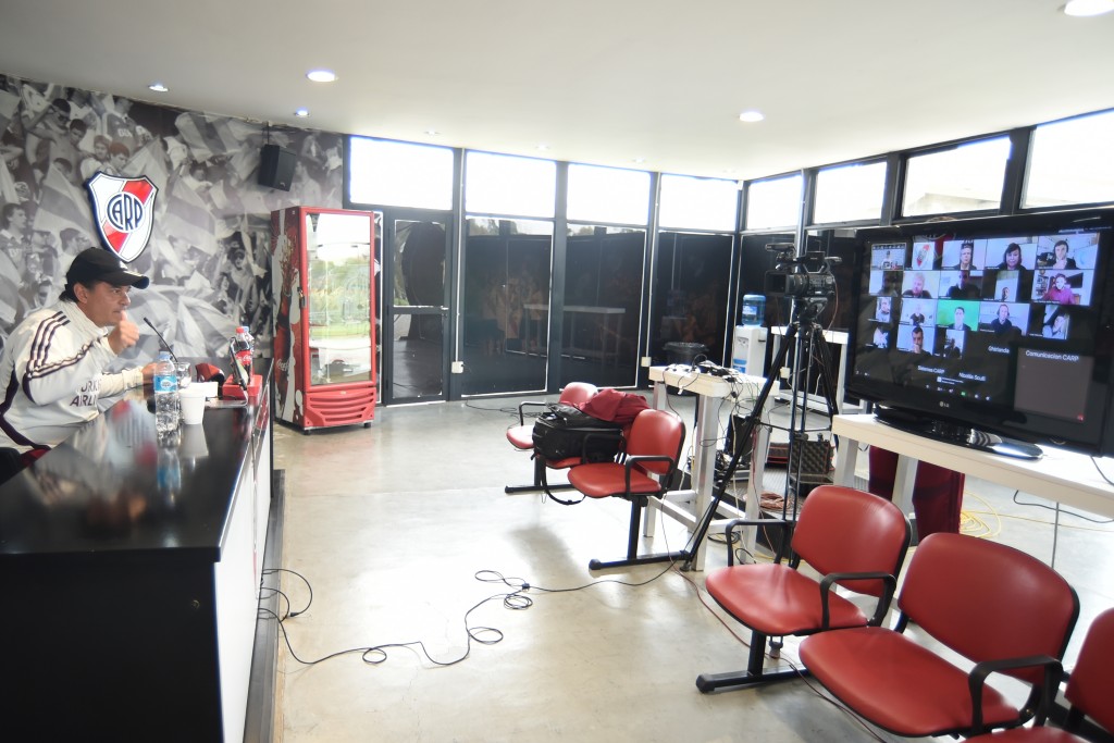 Este martes 15 de septiembre, en la sala de prensa de River Camp, Marcelo Gallardo dialogó con los medios de manera virtual y respondió sus preguntas. La acción, la cual fue coordinada por el Departamento de Comunicación, Medios y Digital y contó con la colaboración del Departamento de Sistemas, duró aproximadamente una hora.