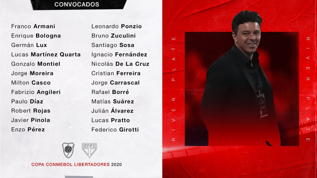 Los convocados de River Plate para recibir a Sao Paulo