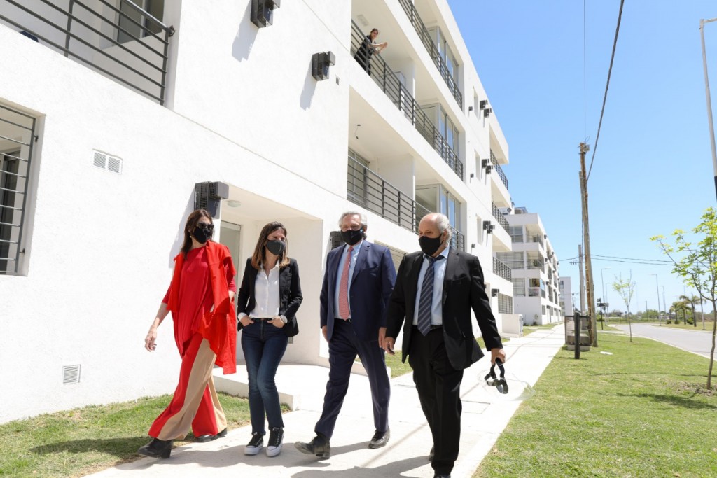 El presidente Alberto Fernández encabezó este mediodía el acto de entrega de viviendas para familias de las provincias de Tucumán, Santa Fe y Buenos Aires, en el predio Procrear de la localidad de Canning, en el partido bonaerense de Ezeiza.