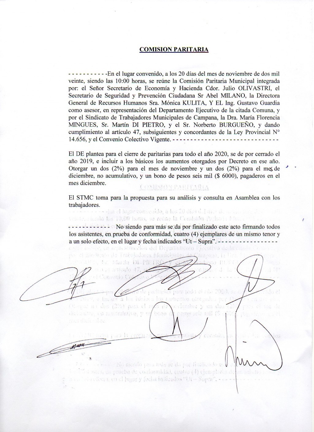 Los avances no fueron grandes, destacando un cambio en la propuesta de mejora salarial por parte del ejecutivo. El bono no remunerativo que se había ofrecido para noviembre y diciembre se reemplazaría por un incremento salarial del 4%, a efectivizarse 2% con los haberes de noviembre y 2 % con los haberes de diciembre, más un bono navideño no remunerativo por única vez de $6.000.- a pagar en efectivo en diciembre.