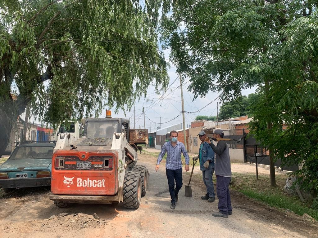 Este martes, por ejemplo, se realizaron también trabajos de zanjeo y recolección de ramas en el barrio Villanueva, donde el Intendente también estuvo presente conversando con vecinos de la zona acerca de la importancia de las tareas de mantenimiento.
