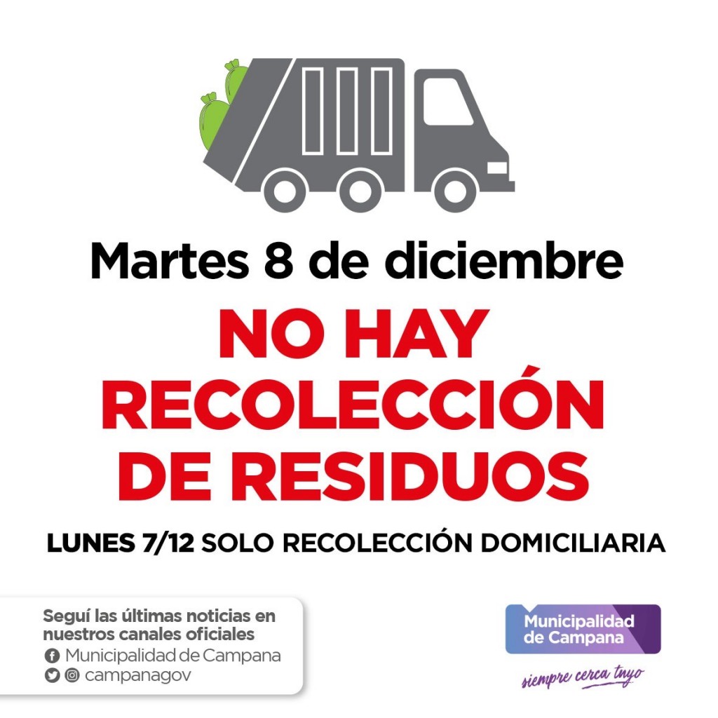 Cambios en la recolección de residuos por los feriados del 7 y 8 de diciembre