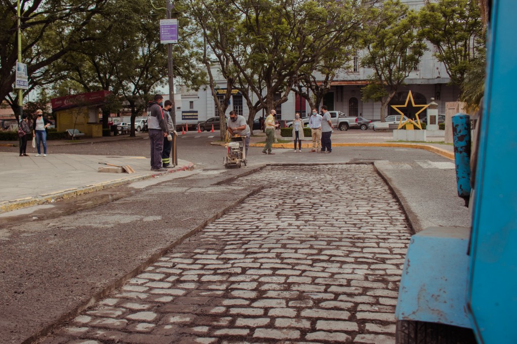El Municipio continúa con la recuperación de los adoquines de la avenida Rocca a fin de resguardar el patrimonio histórico de la ciudad.
