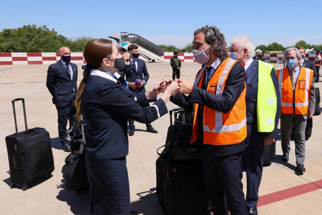 Por último, Cafiero destacó que la tarea de la comitiva en Rusia para poder contar con las dosis de la vacuna “que lideraron la secretaria de Acceso a la Salud, Carla Vizzotti, y la asesora presidencial, Cecilia Nicolini”, y reconoció también al “equipo de gente de ANMAT y logístico de Aerolíneas Argentinas” con quienes desarrollaron “una tarea muy articulada”.