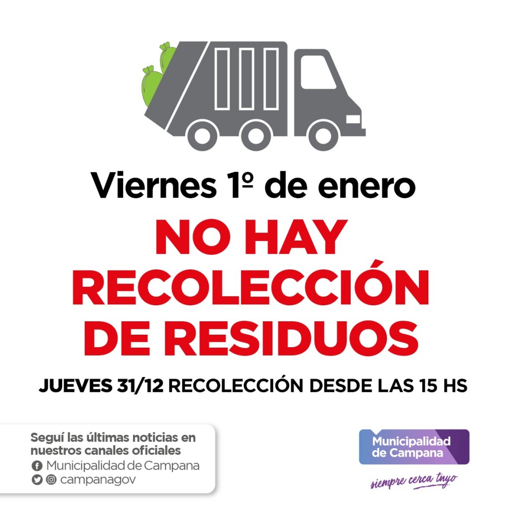 Informan el cronograma de recolección de residuos para Año Nuevo