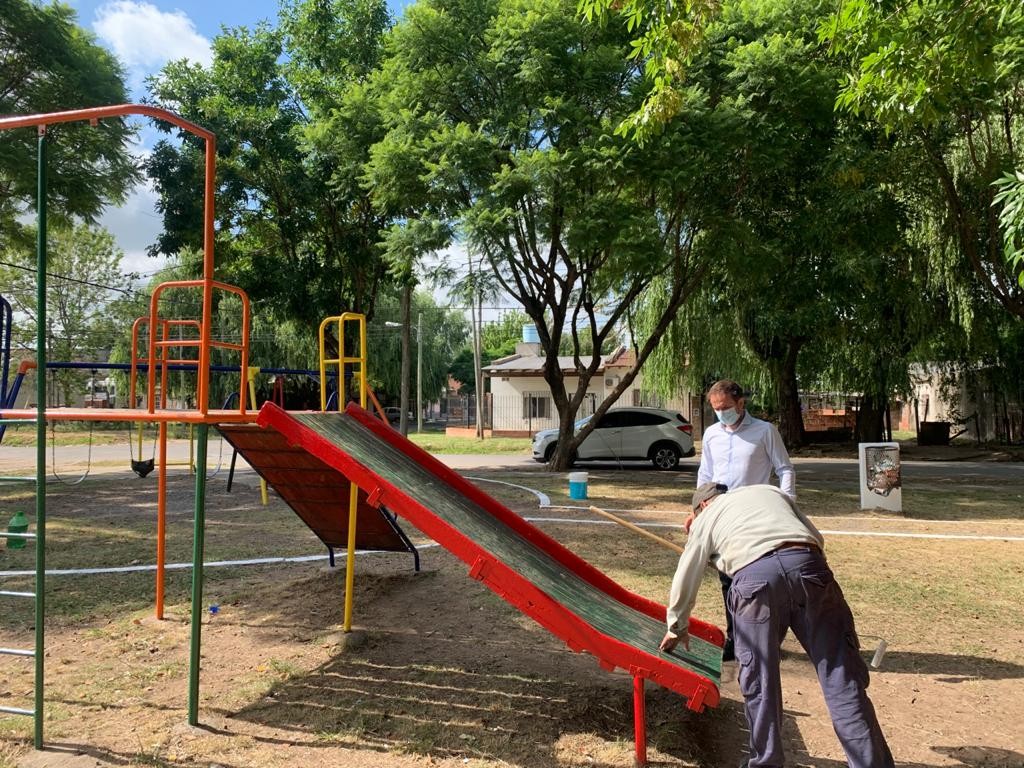 El intendente Sebastián Abella visitó la plaza del barrio 9 de Julio donde se desarrollan distintas tareas de reacondicionamiento.
