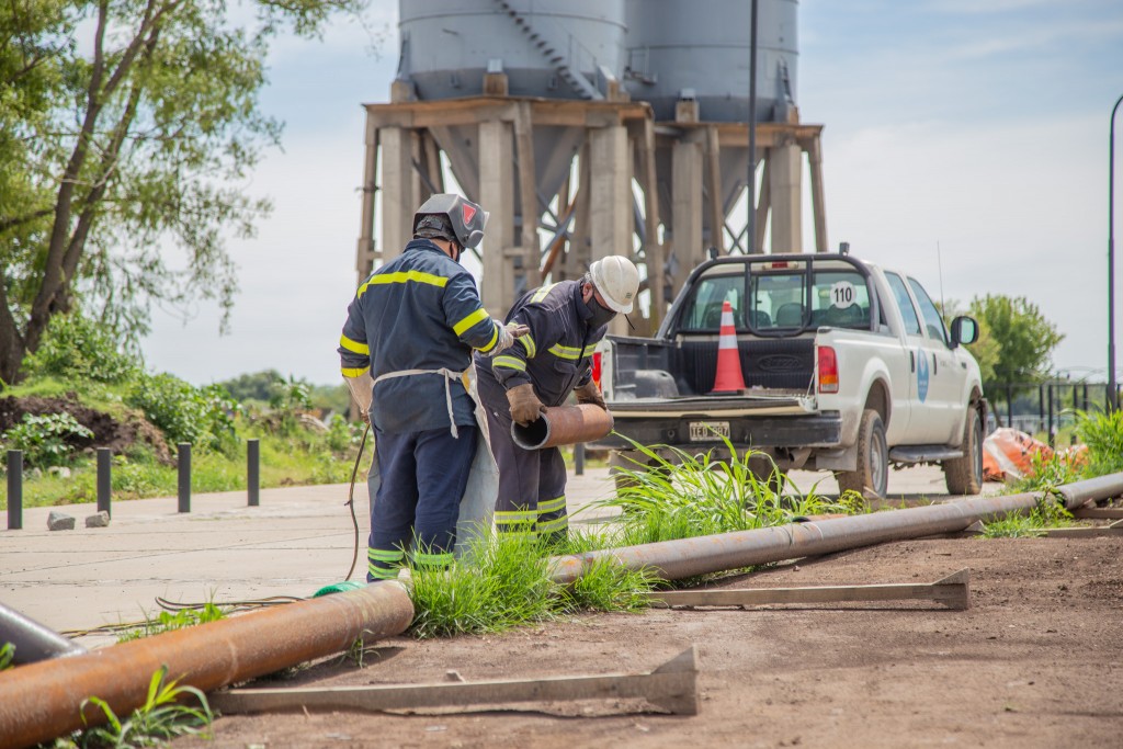 Se trata de una protección de caño que dividirá la calle vehicular con las vías del ferrocarril. Los trabajos se concretan gracias a la donación de la empresa Tenaris Siderca.