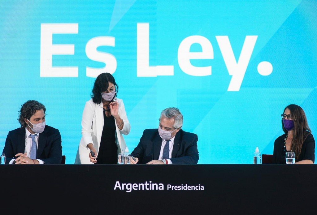 El presidente Alberto Fernández firmó , en la Casa Rosada, el decreto que promulga la Ley 27.610 de Interrupción Voluntaria del Embarazo (IVE) y la 27.611 de Atención y Cuidado Integral de la Salud durante el Embarazo y la Primera Infancia, impulsadas ambas por el propio Jefe de Estado para ampliar los derechos de las mujeres y garantizar su atención en el sistema de salud, y que fueron aprobadas por el Congreso el 30 de diciembre último.