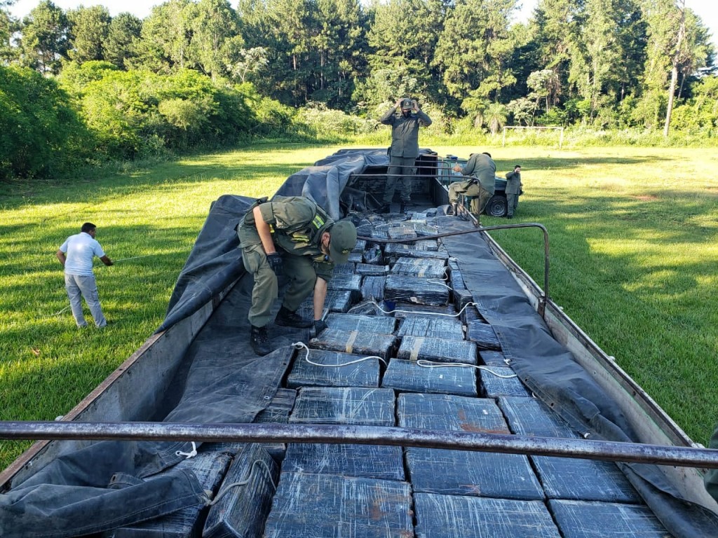 En otro de los procedimientos, trabajadoras y trabajadores del Escuadrón Alto Uruguay, Sección San José del Regimiento Número 6 de la Gendarmería Nacional Argentina, logró incautar más de 4 toneladas de marihuana que eran transportadas en el acoplado de un camión que fue detenido en la provincia de Misiones, sobre la Ruta Nacional Nº 14.