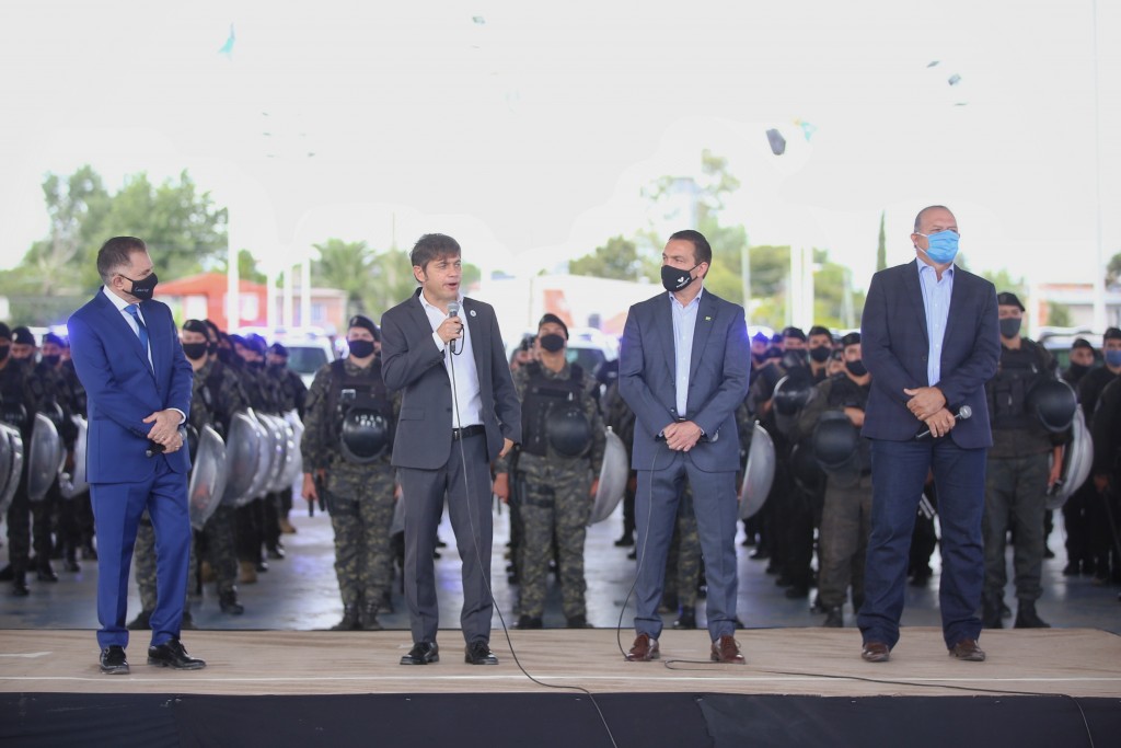 El gobernador de la provincia de Buenos Aires, Axel Kicillof, visitó esta mañana el municipio de Florencio Varela, donde junto al ministro de Seguridad, Sergio Berni, al intendente Andrés Watson y al diputado provincial Julio Pereyra, puso en funcionamiento 30 camionetas blindadas y 10 motos que servirán para reforzar las tareas de patrullaje y prevención del delito en el distrito.