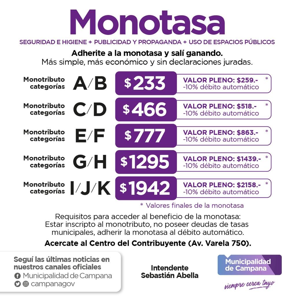 La Secretaría de Ingresos Públicos del Municipio recuerda que sigue vigente la Monotasa con el fin de que los comercios paguen menos tasas.