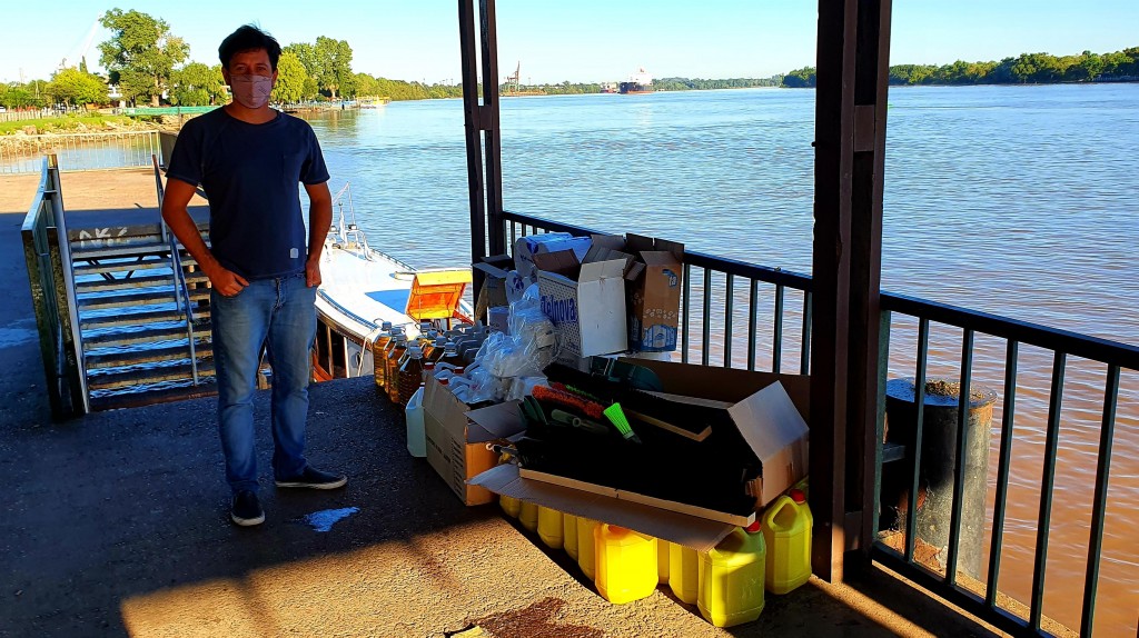 El Consejero Escolar Alejo Sarna participó del operativo de distribución en distintos barrios de Campana, y estuvo días atrás entregando los elementos para las escuelas del delta del Paraná campanense.