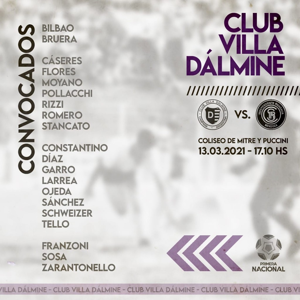 VILLA DALMINE DEBUTA ESTA TARDE EN CAMPANA ANTE INDEPENDIENTE RIVADAVIA DE MENDOZA