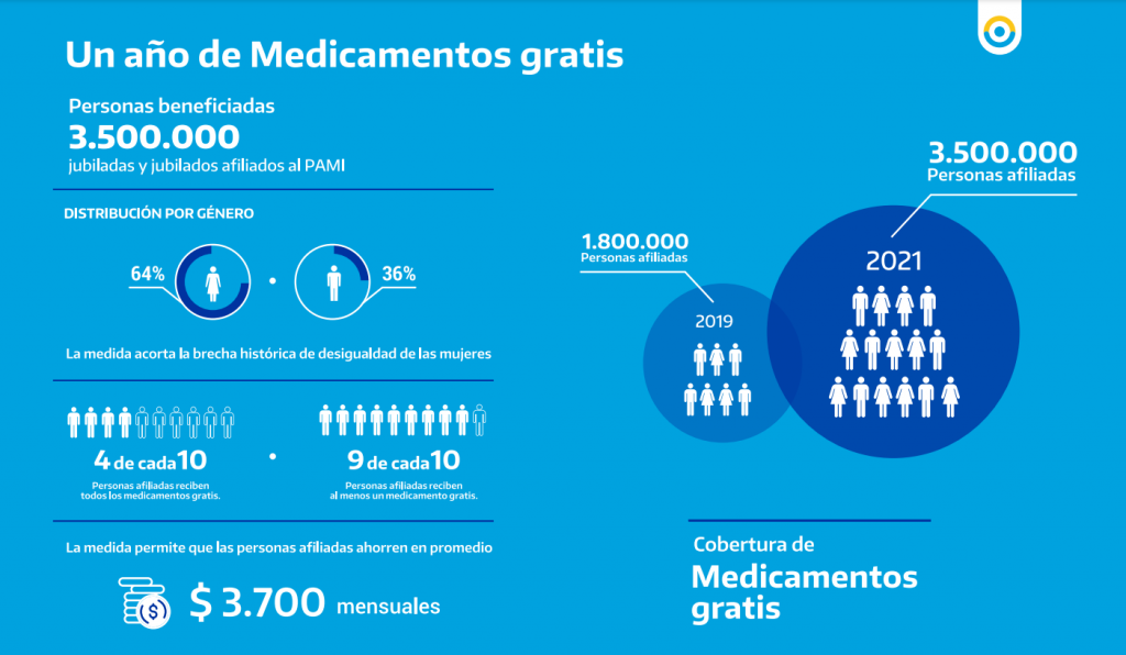 La medida permitió duplicar la cantidad de personas afiliadas que acceden a los medicamentos gratis, que pasó de 1.800.000 en 2019 a 3.500.000 en la actualidad.