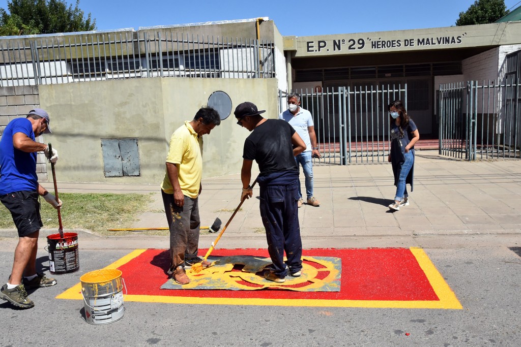 Esta semana, Casaretto y Contreras se acercaron a la Escuela 29 "Héroes de Malvinas" del Barrio Lubo, donde el personal municipal se encontraba realizando este tipo de trabajos con el objetivo de favorecer la seguridad vial en el establecimiento y entre la comunidad educativa.
