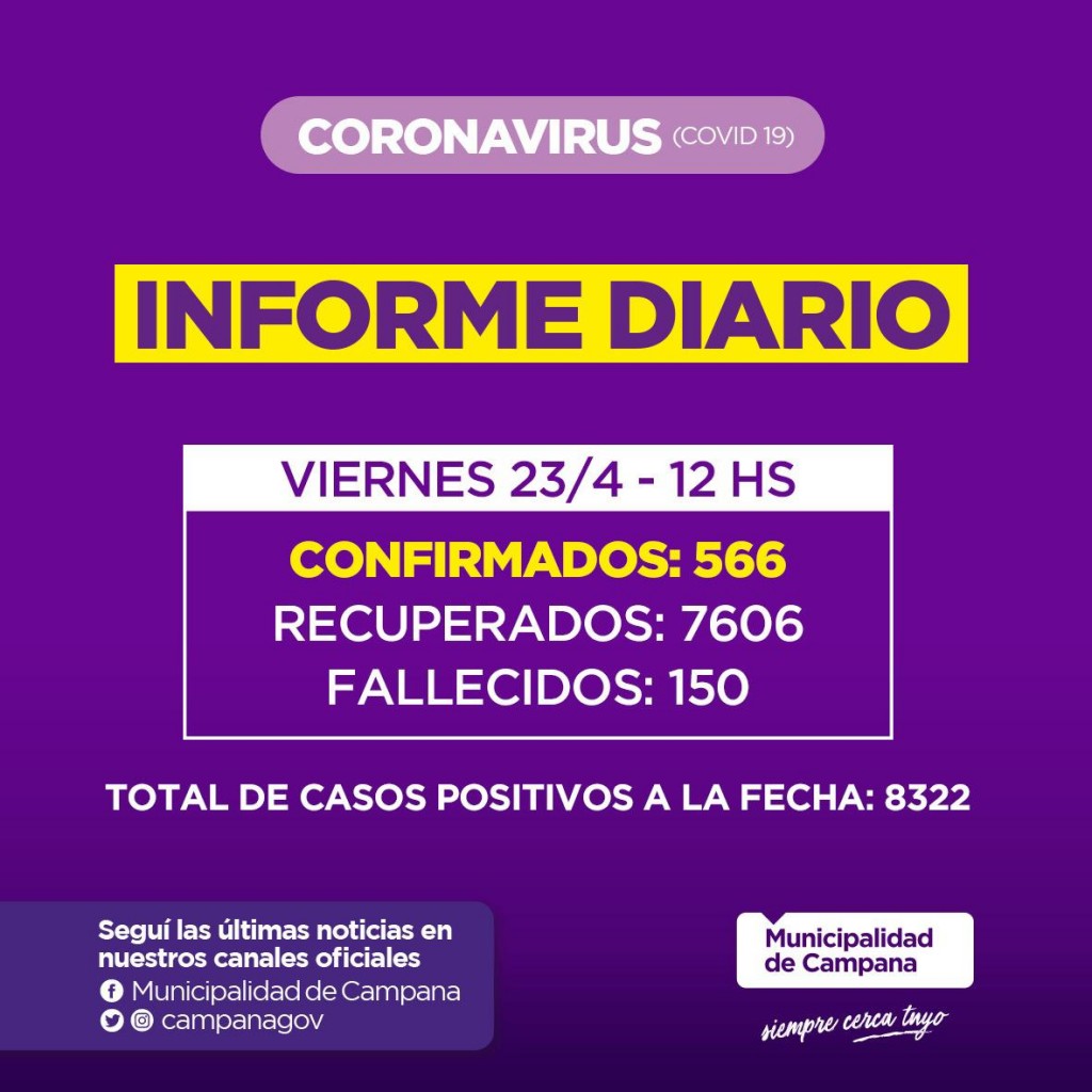 Informe de la Secretaria de Salud de la Municipalidad de Campana : tres fallecidos en nuestra Ciudad