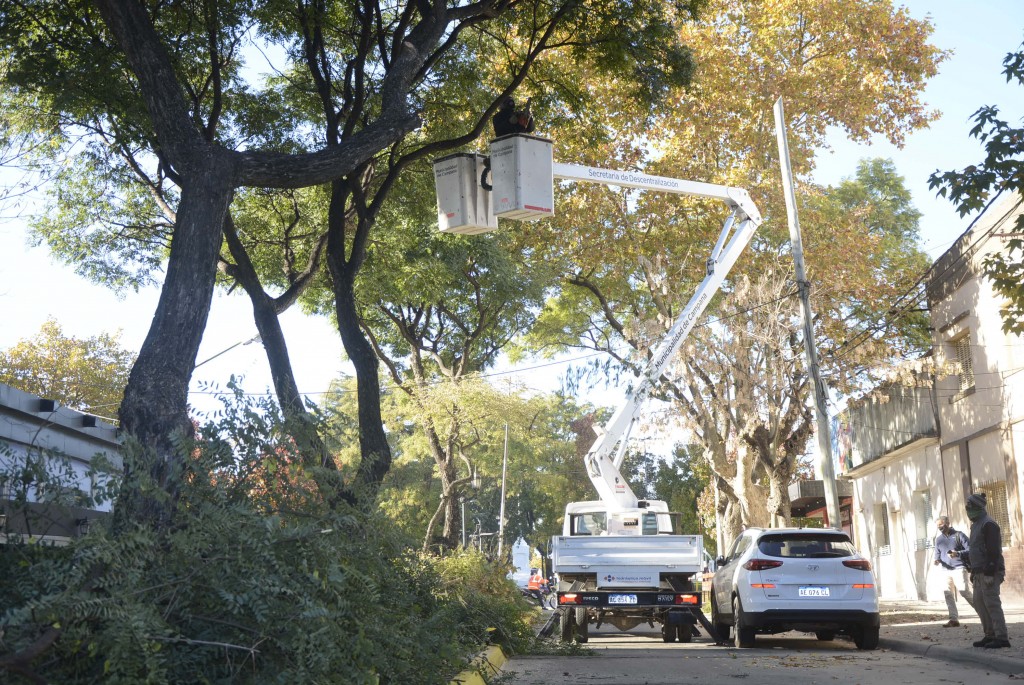 Cada uno de ellos se lleva adelante con la intervención de un vehículo con grúa y canasto para trabajar en altura y motosierras. También brinda colaboración un camión para retirar las ramas cortadas realizando la limpieza del lugar de forma inmediata.