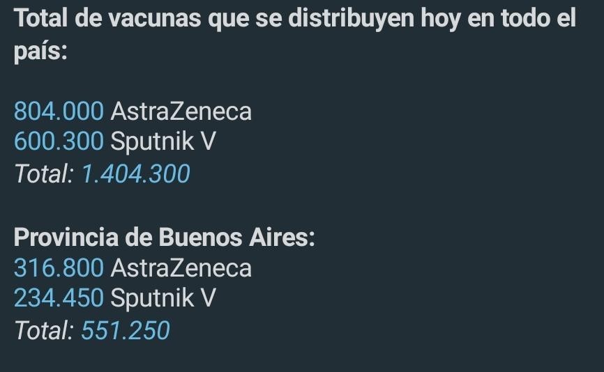 Casi 1.500.000 de vacunas comenzaron a distribuirse en todo el país: 600.300 nuevas dosis de Sputnik V se suman a las 804.000 de AstraZeneca contra el coronavirus