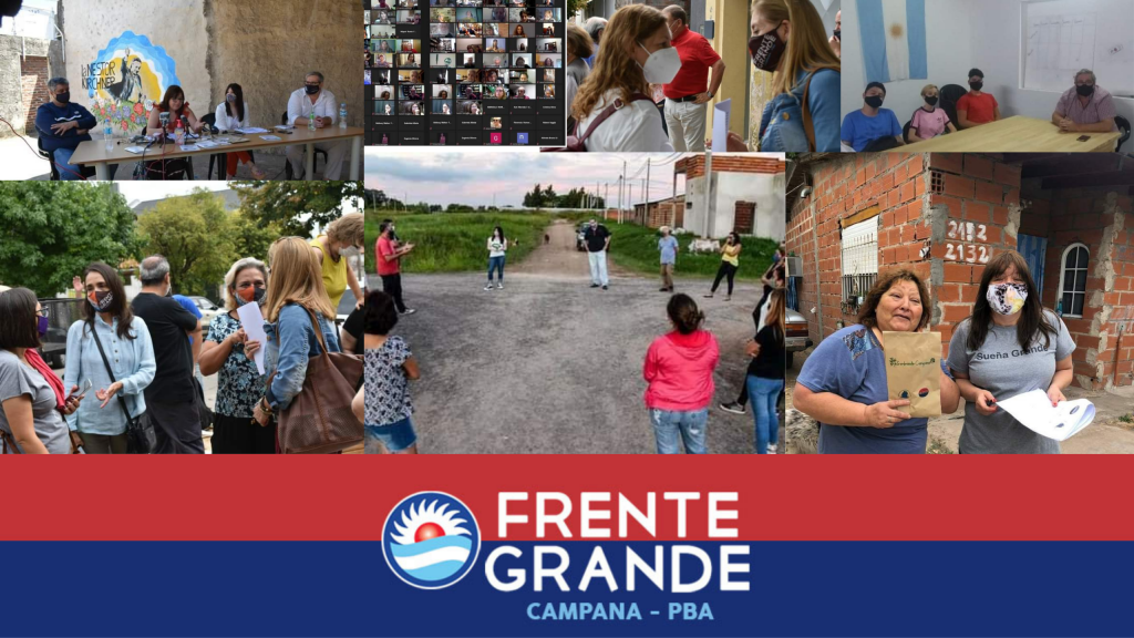 Como organización política, el Frente Grande en Campana, ha sido afectado como la sociedad toda por los efectos de la pandemia del covid 19, acotando nuestro caminar de manera presencial, ya que hemos adherido a las recomendaciones de cuidado, aislamiento, distancia social, que el gobierno nacional propuso desde el principio, no obstante,  no nos hemos quedado quietos, no nos hemos confundido y hemos seguido marcado una diferencia ideológica, aun desde la virtualidad, que tiene un único fin: el rescate de nuestra soberanía como personas, primero, para luego avanzar en barrios, y ciudades, tocando los temas, y trabajando en aquellas cosas que pueden modificar un poco la realidad tan cruda que vivimos la mayoría de los argentinos.