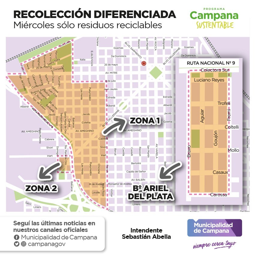 El Municipio, a través Dirección de Calidad Ambiental, Bromatología y Zoonosis, recuerda que este miércoles se realizará una nueva recolección diferenciada de residuos en los barrios Ariel del Plata, Dálmine Viejo y Nuevo; y un sector del casco urbano.