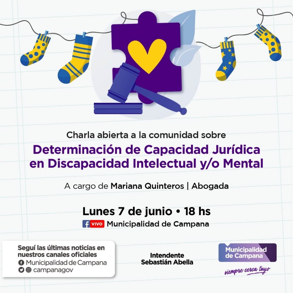 La Dirección de Discapacidad del Municipio llevará adelante el próximo lunes 7 de junio una charla virtual abierta a la comunidad sobre “Determinación de Capacidad Jurídica en Discapacidad Intelectual y/o Mental”.