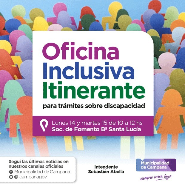 Si bien la Oficina Inclusiva recorrerá todos los barrios, los vecinos pueden acercarse a 25 de Mayo 1117, como así comunicarse a través del mail [email protected] o bien vía Whatsapp al 660798.