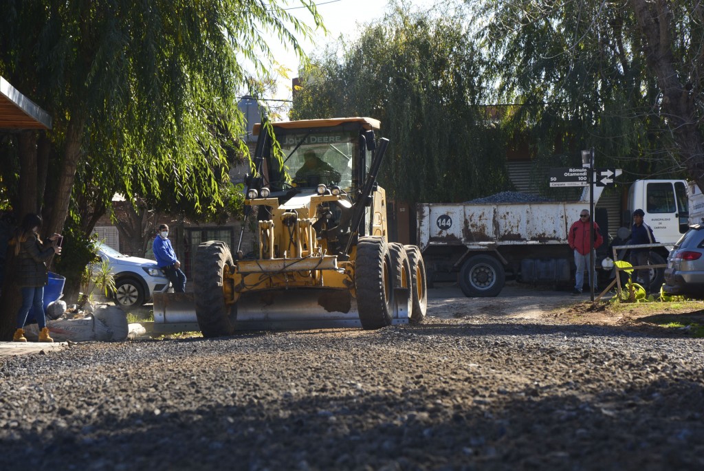 Tras completar el barrio San Jacinto, este martes, una cuadrilla de la Secretaría de Espacio Público realizó tareas de mejoras en calles de tierra del barrio Otamendi.