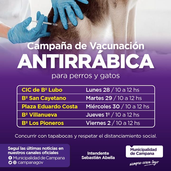 Luego de que trascendiera un nuevo caso de rabia en San Fernando, la Dirección de Zoonosis del Municipio reitera la importancia de cumplir con la aplicación de la vacuna antirrábica y anuncia una campaña para tal fin.