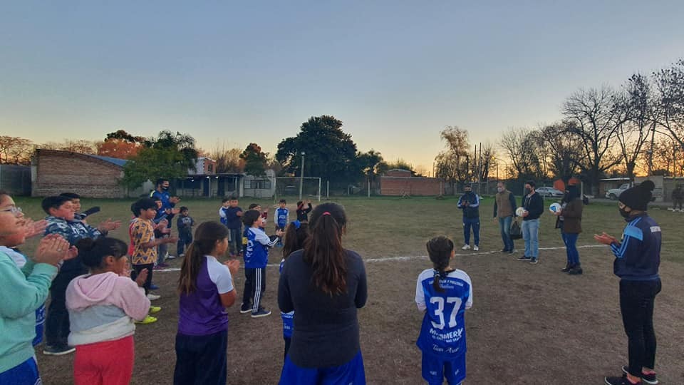 El Referente del Frente de Todos Campana Alejo Sarna, Carlos Castillo del Movimiento de Restauración Peronista y Aylen Dalprá de la misma agrupación se acercaron hasta la escuelita de fútbol "Las Campanas" donde chicos y chicas del barrio aprenden a jugar al fútbol juntos y se divierten.