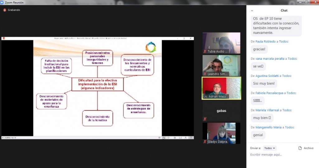 En la tercera capacitación, fue el Lic. Adrian Mazzuglia quien abordó la temática de “La Educación Sexual Integral y su Concepto Ampliado”. Se trataron aspectos vinculados a la gestión curricular e institucional de la ESI, la transversalidad e integralidad, facilitadores y obstaculizadores de la gestión curricular e institucional de la ESI.