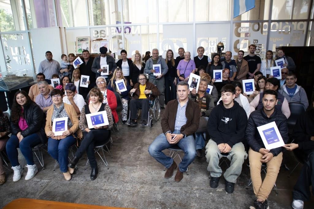 Del acto, realizado en la Biblioteca Municipal, participaron el intendente interino Luis Gómez; el subsecretario de Gestión, Banco de Tierras, Colectividades y Culto, Javier Contreras; y la escribana Carolina Barassi.
