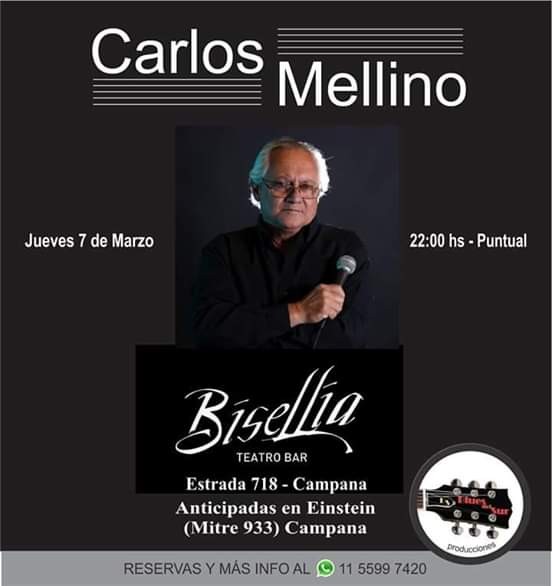 Carlos Mellino se presenta esta noche en "Bisellia Teatro Bar"