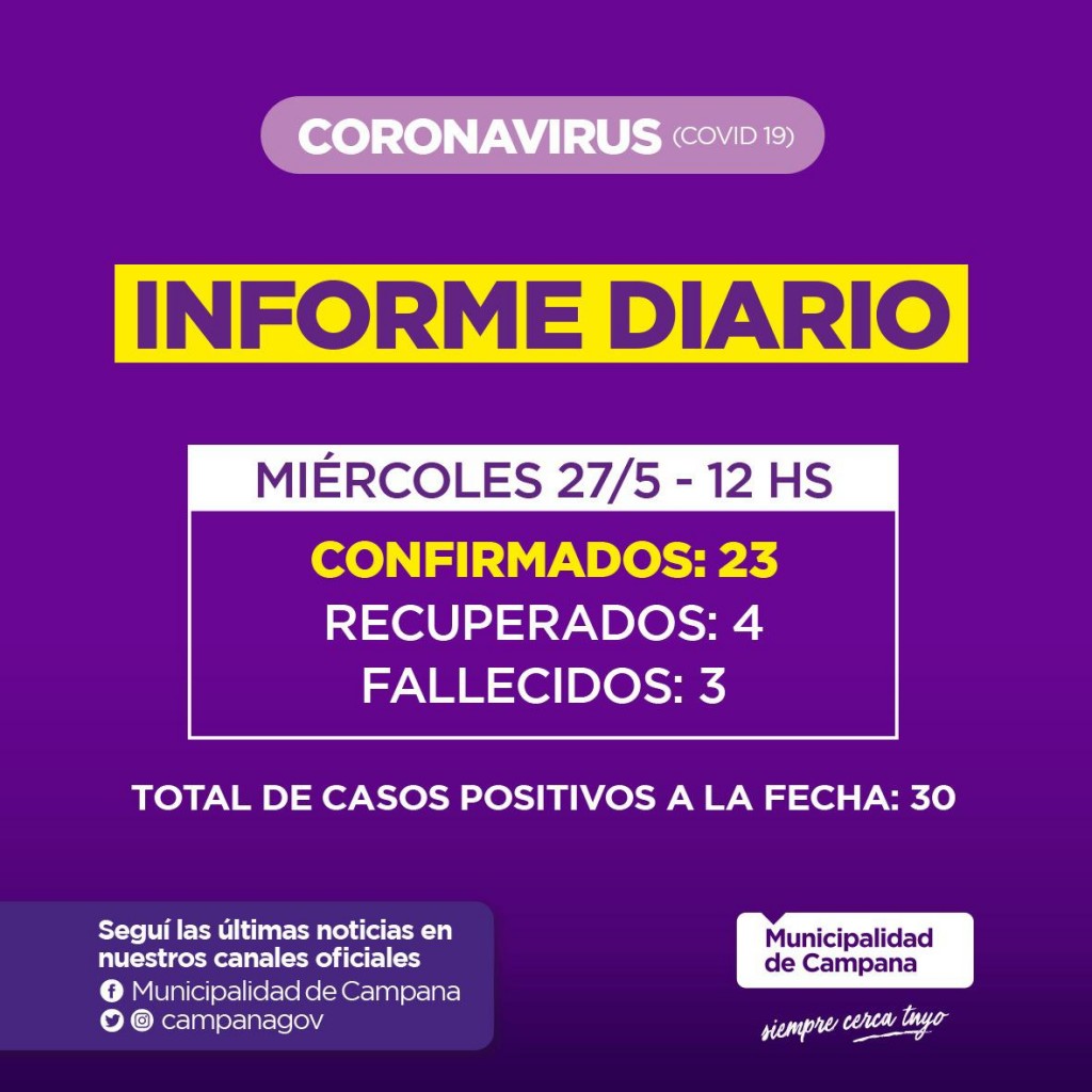Se confirmaron 43 nuevos casos y un fallecimiento. La persona fallecida es una mujer de 70 años que estaba internada en el hospital San José.INFORME SECRETARIA DE SALUD MUNICIPALIDAD DE CAMPANA: BAJARON LOS CONTAGIOS
