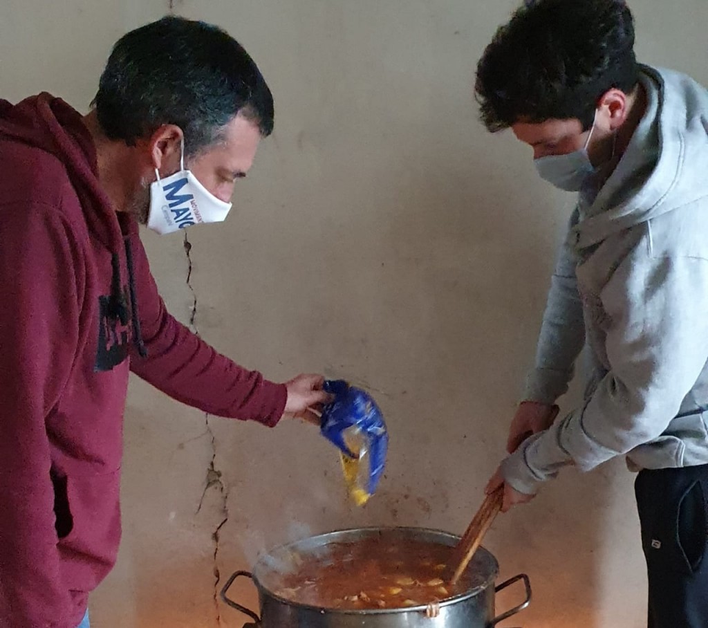 Foto: Alejo Sarna junto a Diego Costa de la agrupación Mayo, cocinando en la "Olla Solidaria" de Las Acacias.COMPARTIR: