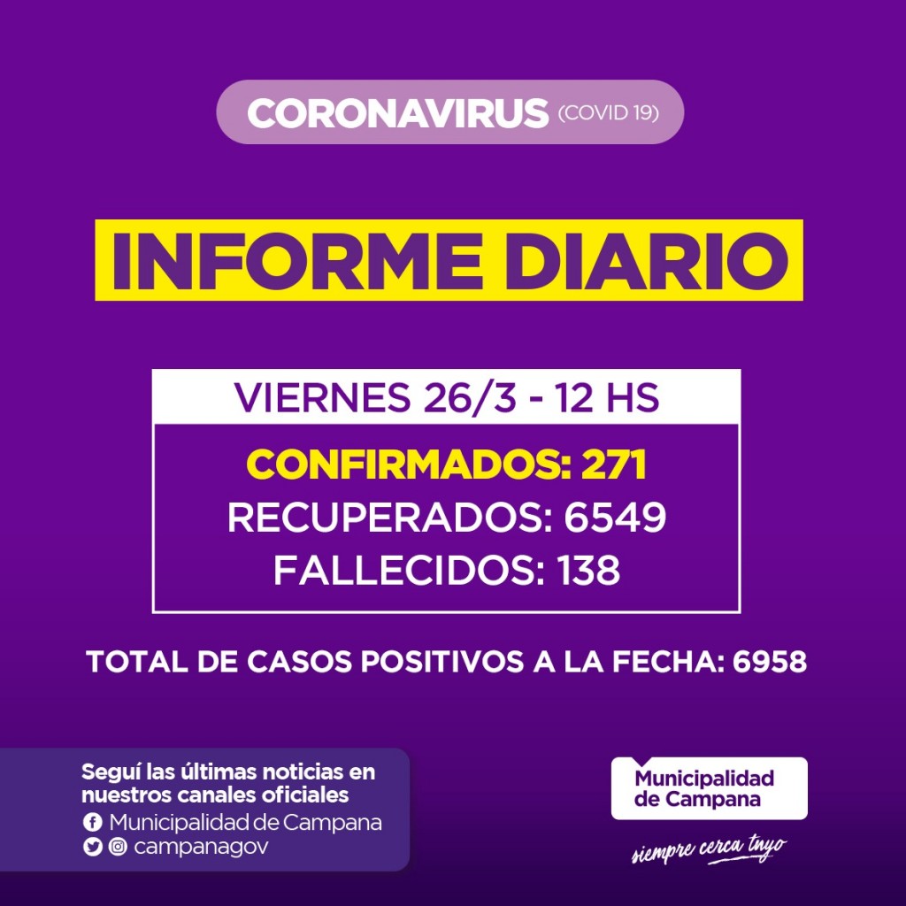 Se confirmaron 43 nuevos casos y un fallecimiento. La persona fallecida es una mujer de 70 años que estaba internada en el hospital San José.INFORME SECRETARIA DE SALUD MUNICIPALIDAD DE CAMPANA: BAJARON LOS CONTAGIOS