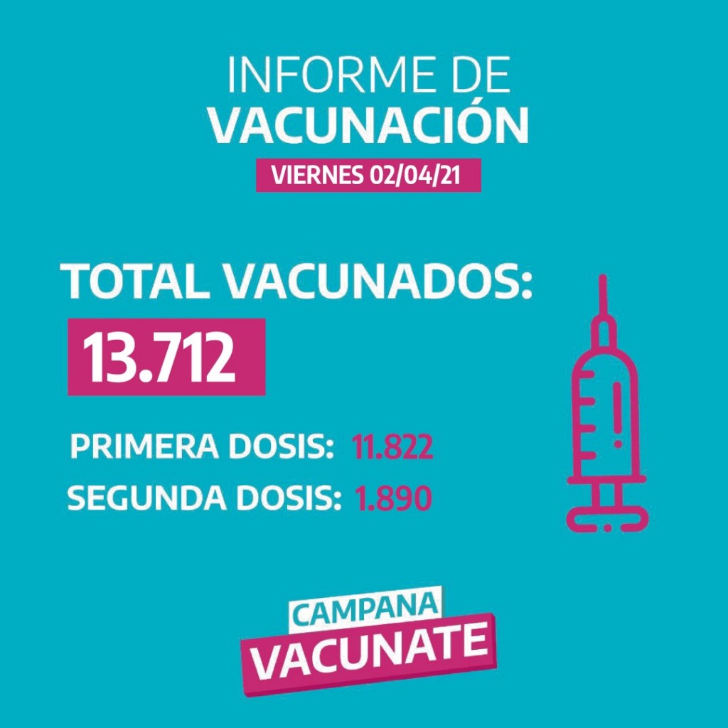 Hasta la fecha, se llevaron a cabo 13712 aplicaciones, se las cuales 11822 corresponden a la primera dosis.