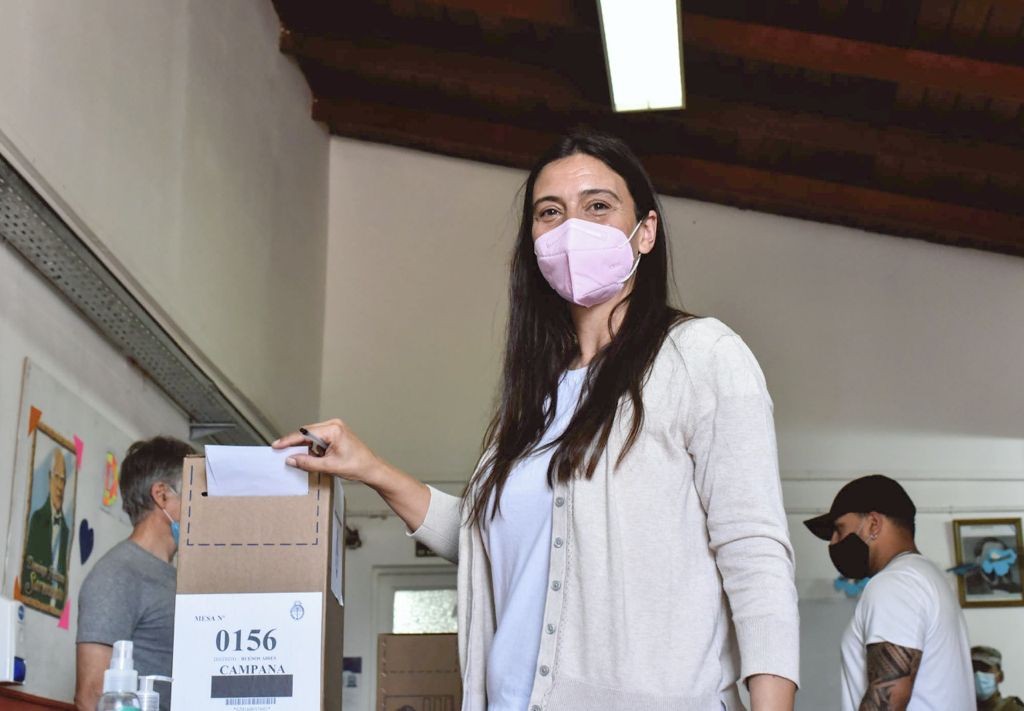 La candidata a primera concejal de Juntos Lista 506 1 A, Elisa Abella, votó cerca del mediodía en la escuela primaria 6, ubicada en Ruta 6, y llamó a los vecinos a ir a “votar con alegría”.