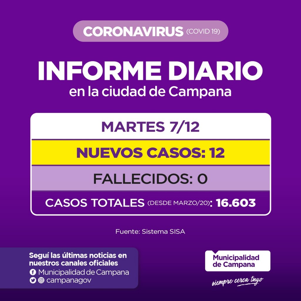 Se confirmaron en el día de hoy 12 casos positivos en la Ciudad.