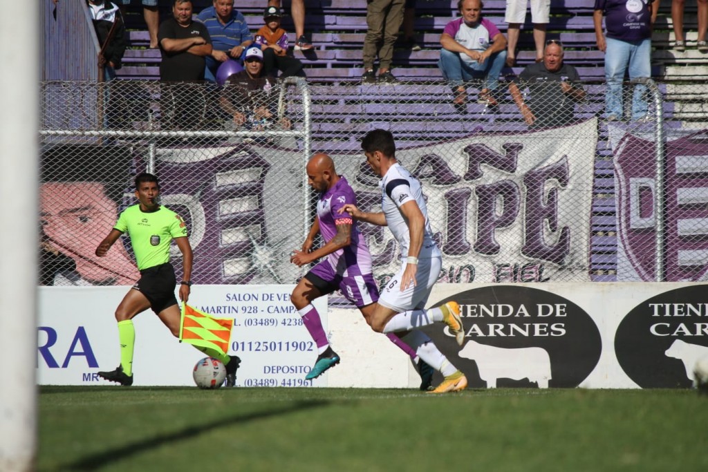 Bajo la lluvia, en un campo que aguantó bien las condiciones climáticas el "violeta" volvió a ganar como visitante con un gol de Cristian Broggi de penal en la parte final del juego.Se lo empataron a Villa Dálmine en el final
