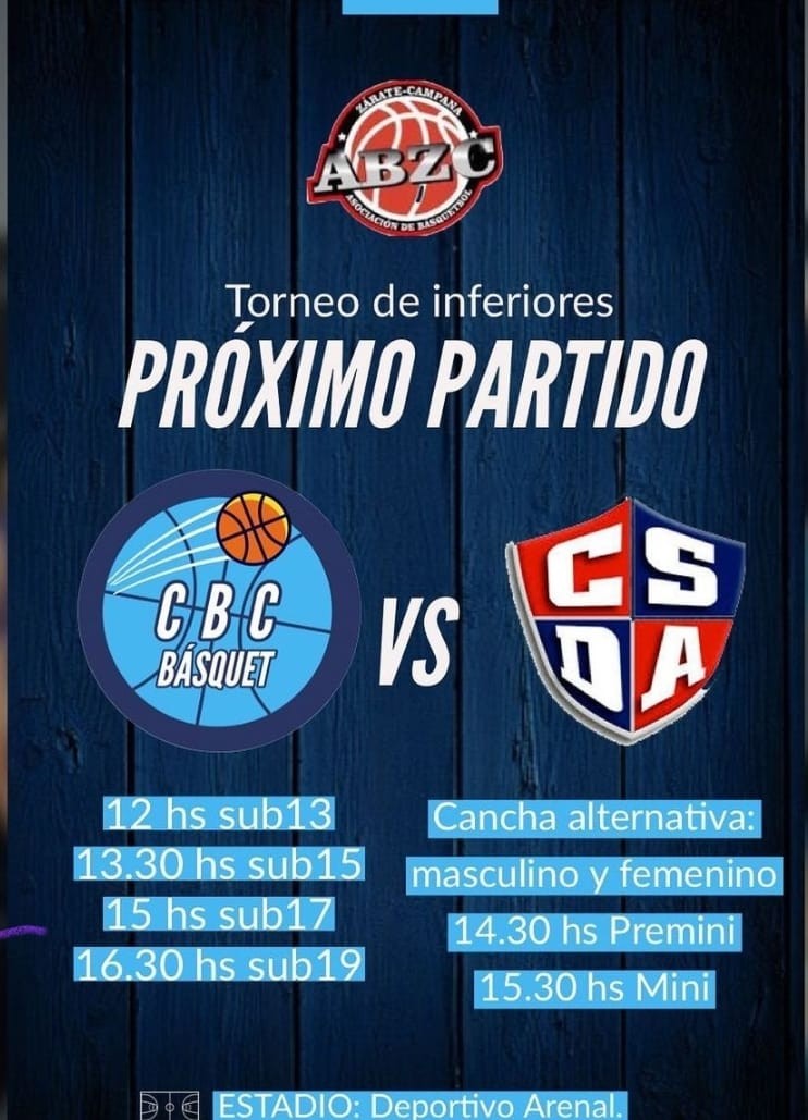 Será hoy sábado por la primera fecha del Torneo que organiza la Asociación de Básquetbol Zárate-Campana donde enfrentará con las categorias U13-U15-U17 y U 19 a Arenal de Ingeniero Maschwitz.