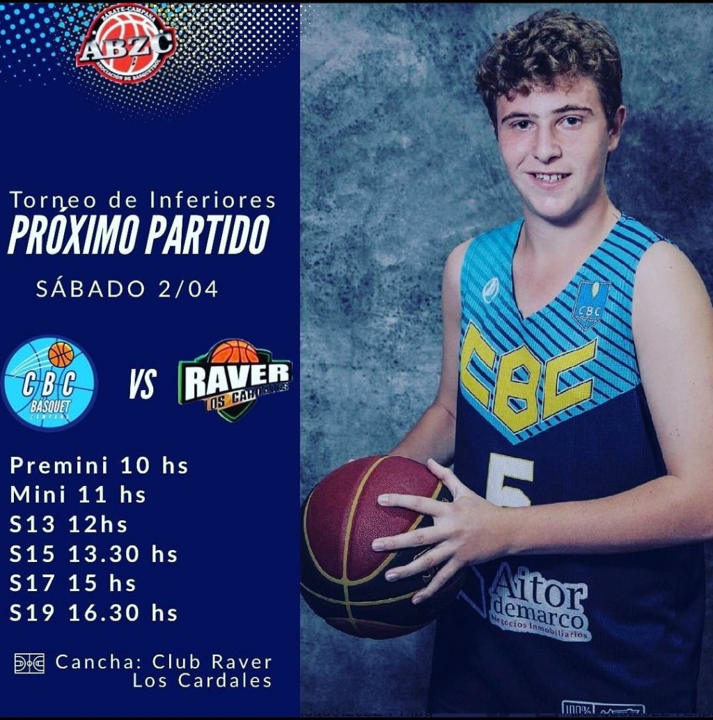 Actividad programada para el Basquet de divisiones formativas de la A.B.Z.C del Campana Boat Club para este sábado 2 de abril.