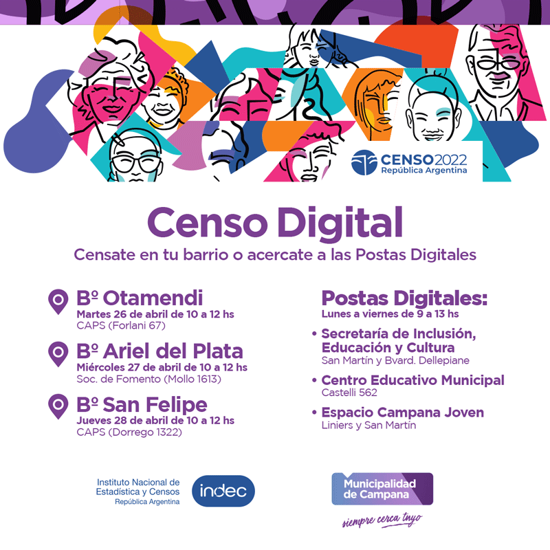Censo 2022: el Municipio informa el cronograma de las postas digitales